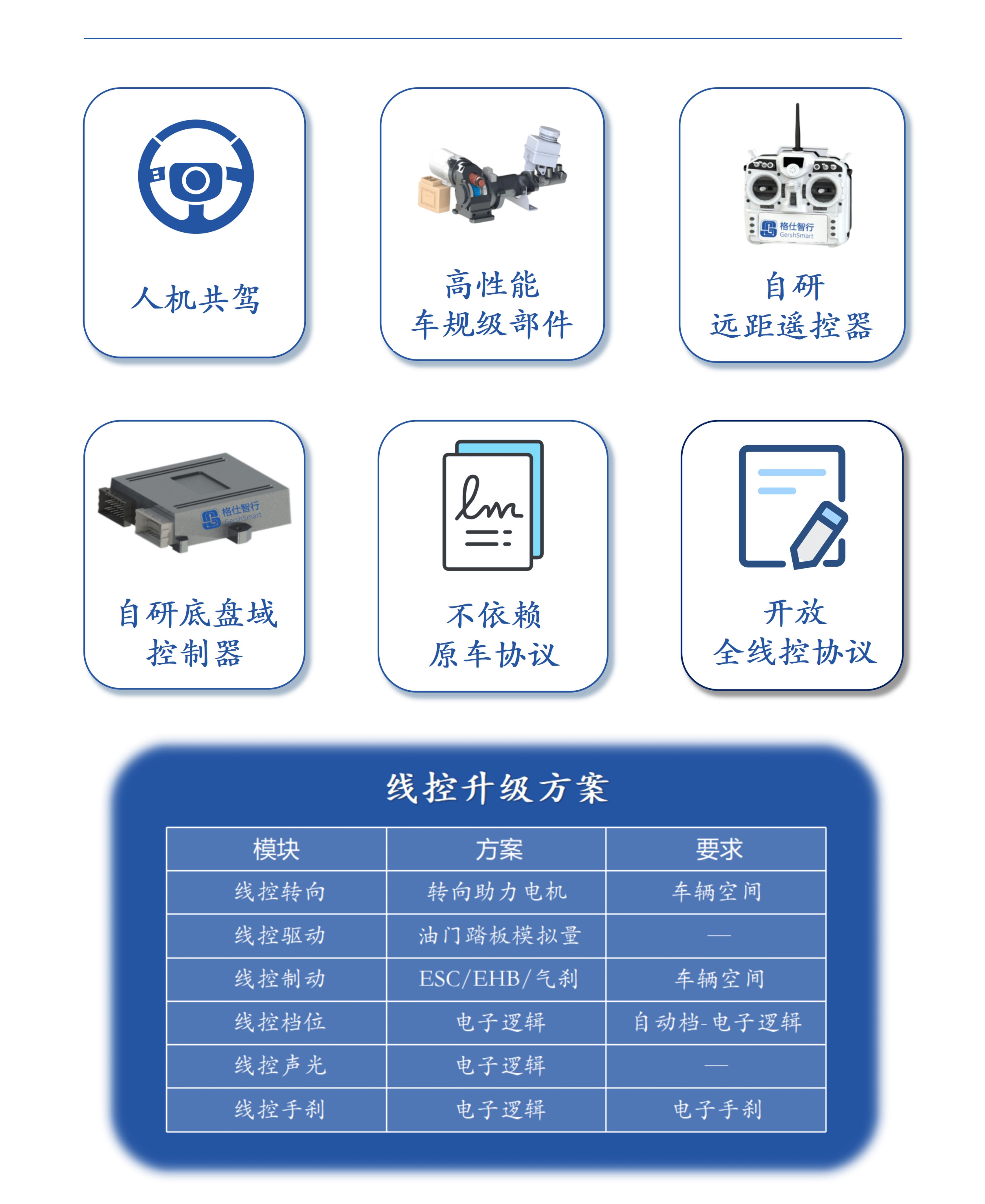 格仕智行车辆线控改制乘用车、低速传统车、商用车重卡线控底盘